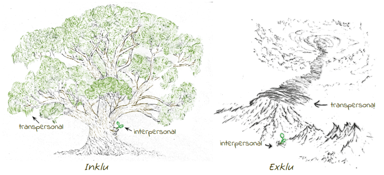 Die Vorstellung, auch intensive, erfüllende transpersonale Verbindungen haben zu können, mag auf den ersten Blick zutiefst befremdlich erscheinen, ist doch das Exklu-System vollkommen von dem Prinzip durchzogen, dass alles außerhalb der interpersonalen Sphäre ausschließlich durch Exklusionslogik bestimmt wird. Verbindungen im transpersonalen Raum können daher unmöglich einen Ankerpunkt in unserem Leben darstellen; Verbundenheit und ein erfülltes Sozialleben assoziieren wir ausschließlich mit interpersonalen Verbindungen.